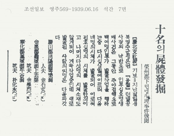 10명의 시체발굴(屍體發掘) > 언론에서 본 영주