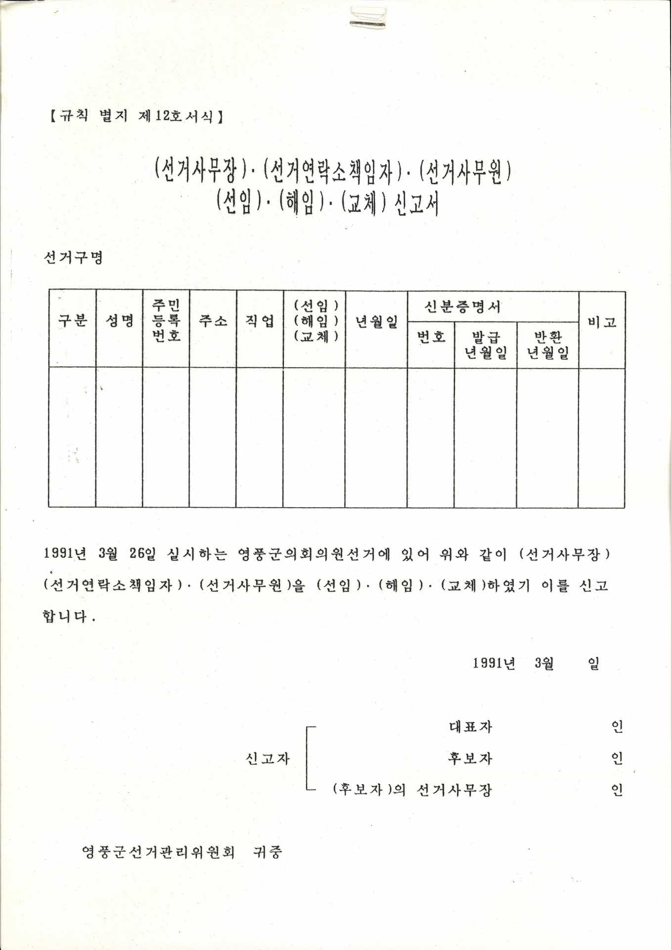 | 기록물명 | 선거사무장*선거연락소책임자*선거사무원 선임*해임*교체 신고서 | ||