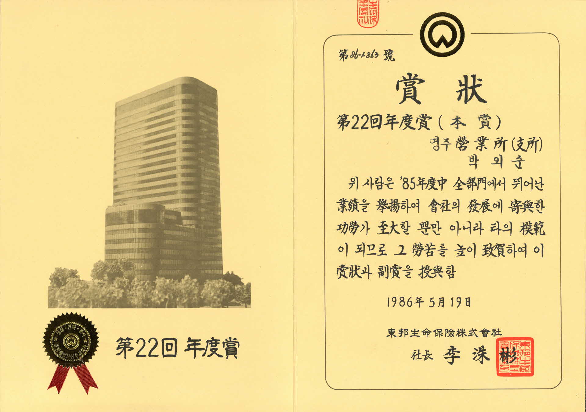 | 기록물명 | 1986년 동방생명보험주식회사 상장 | ||