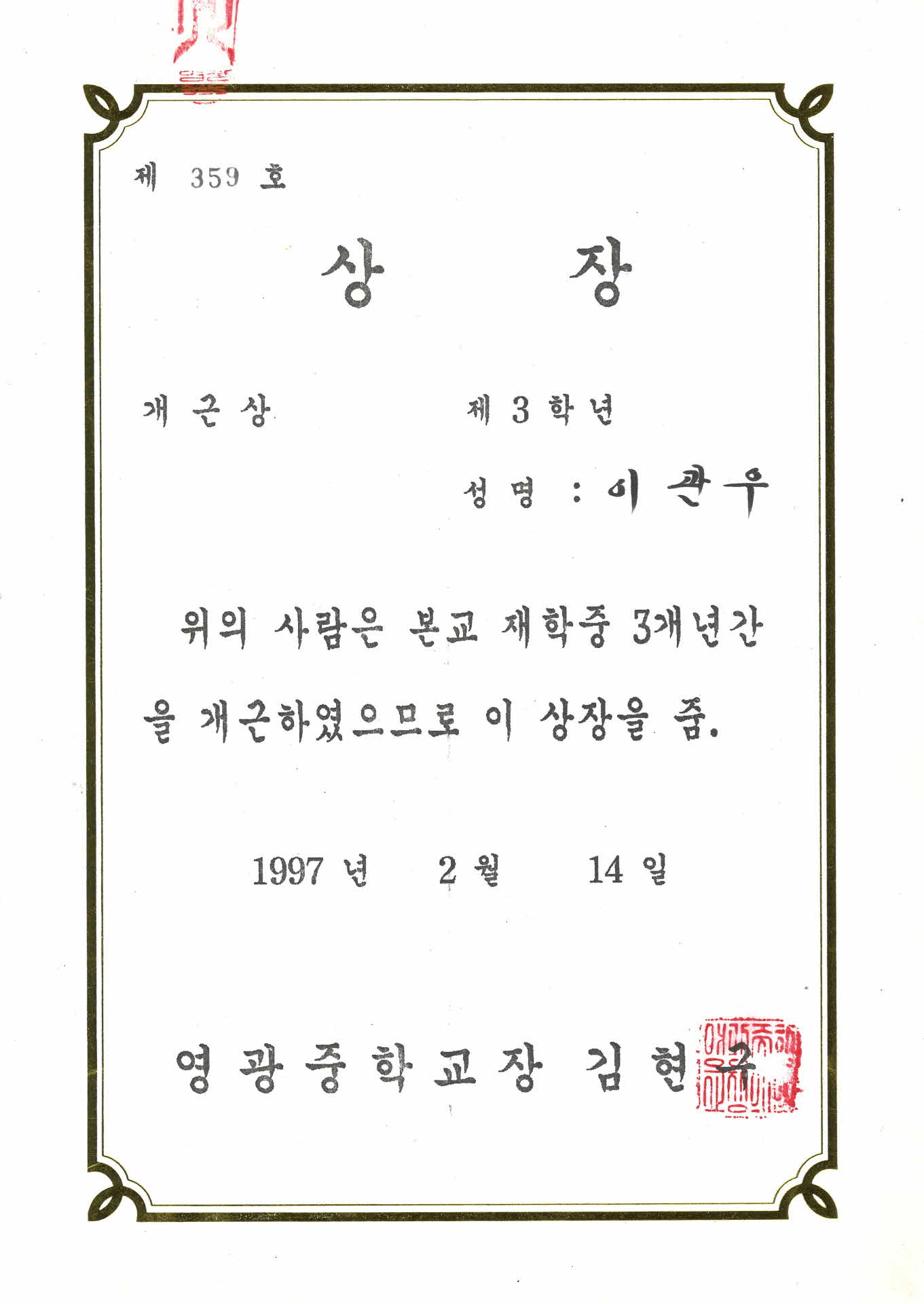 | 기록물명 | 1887년 영광중학교 개근상 | ||