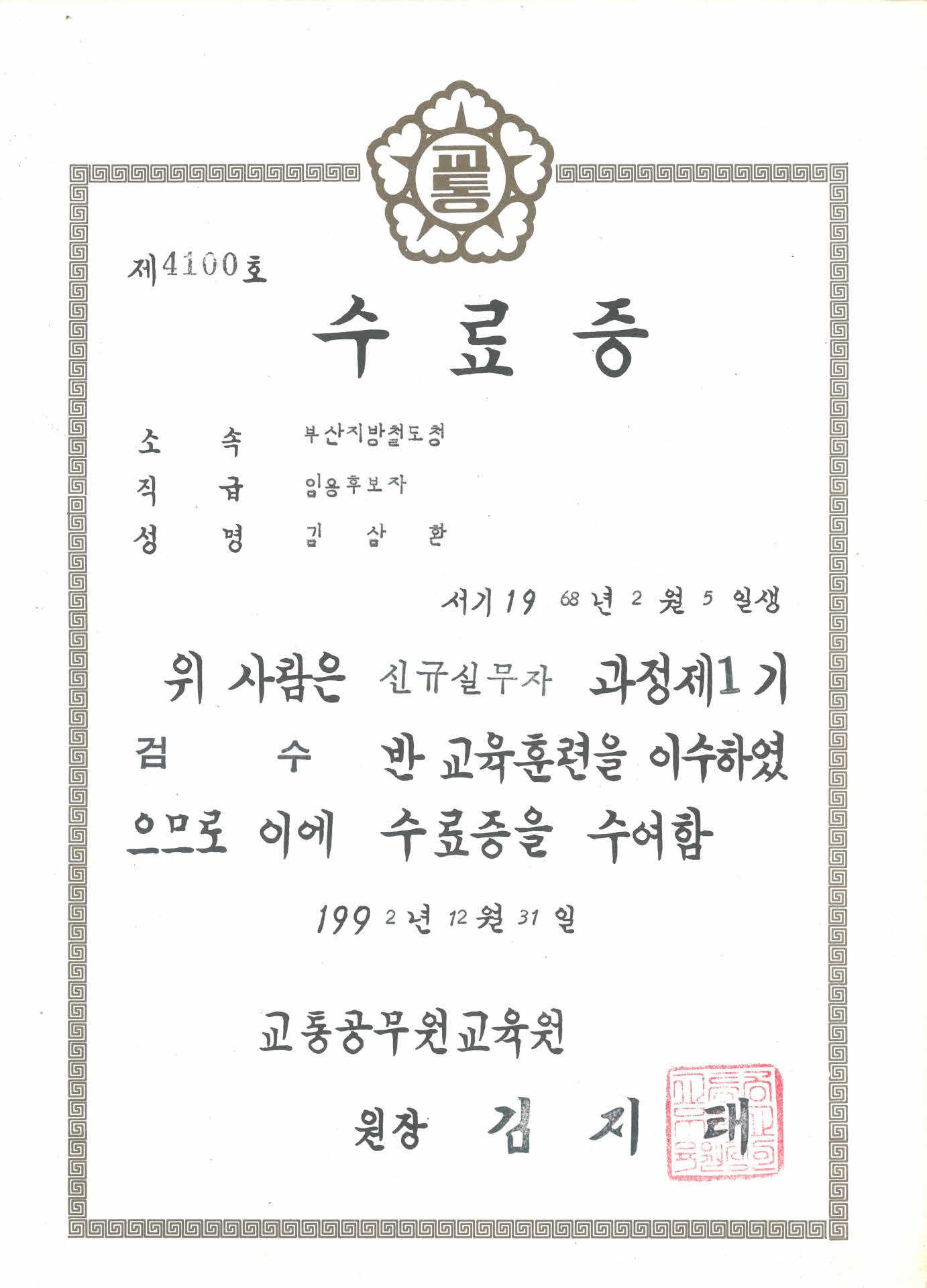| 기록물명 | 수료증 | ||