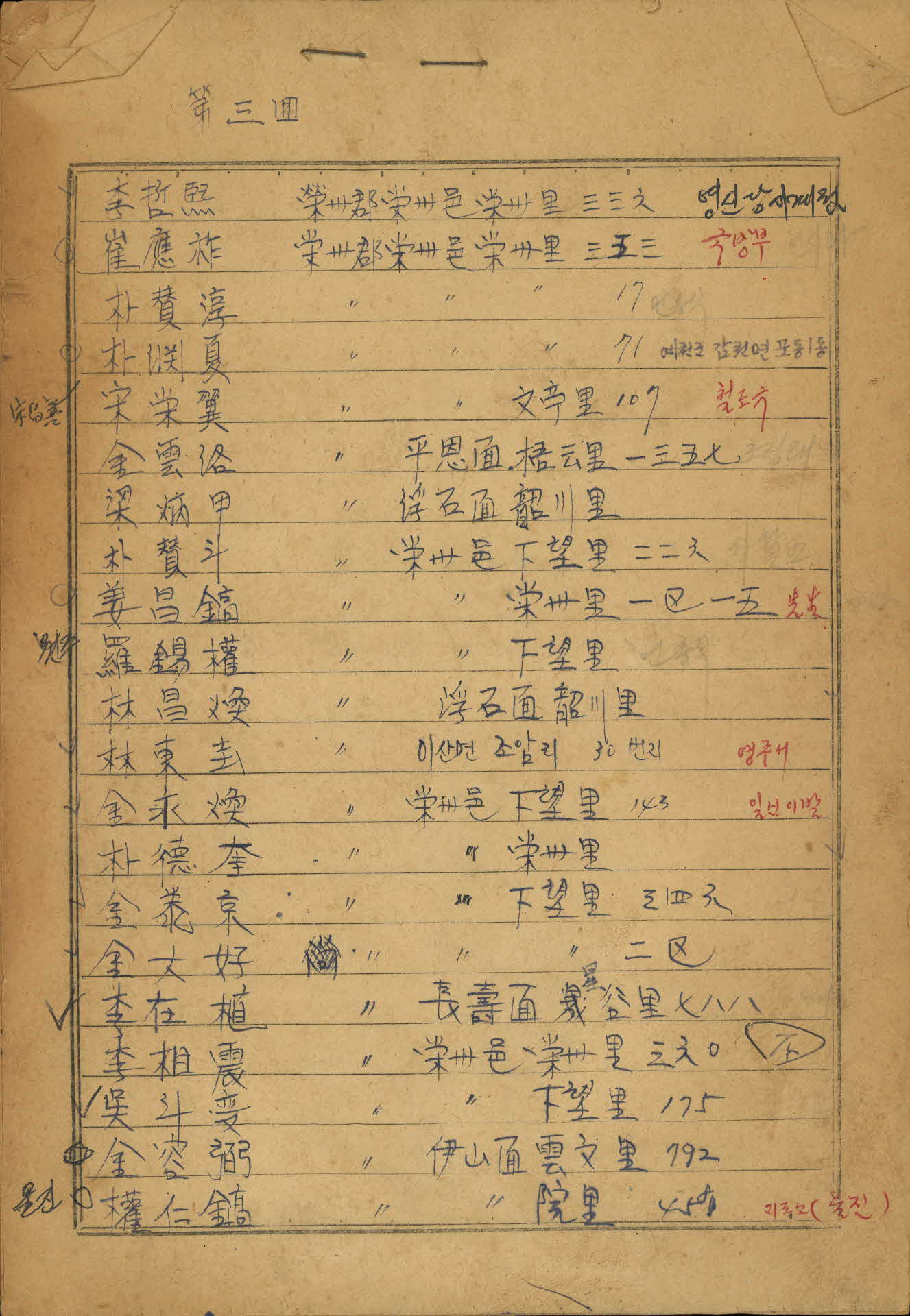| 기록물명 | 영주중학교3회 주소록 | ||
