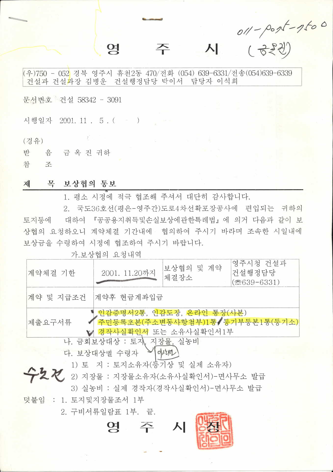 보상협의 통보안내문