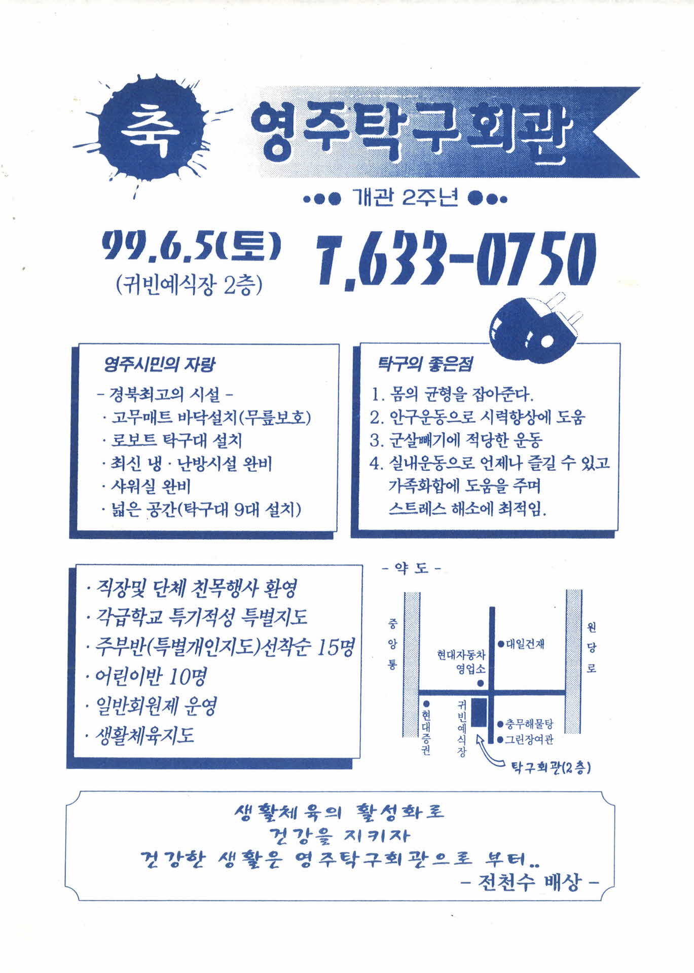 1999년 영주탁구회관 개관 2주년 홍보전단