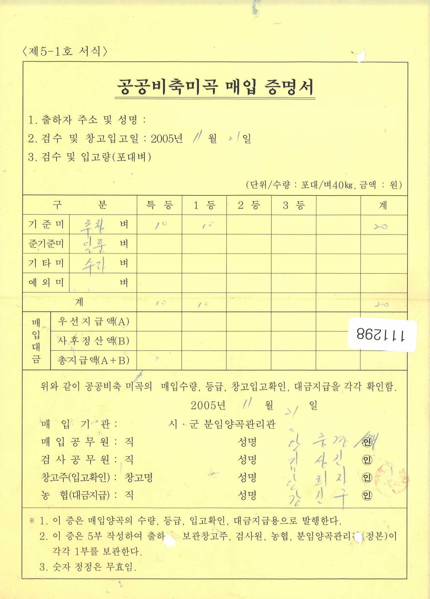 | 기록물명 | 공공비축미곡 매입 증명 | ||