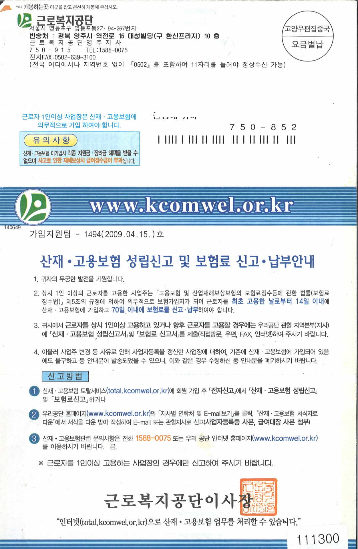 상재,고용보험 성립신고 및 보험료 신고, 납부안내