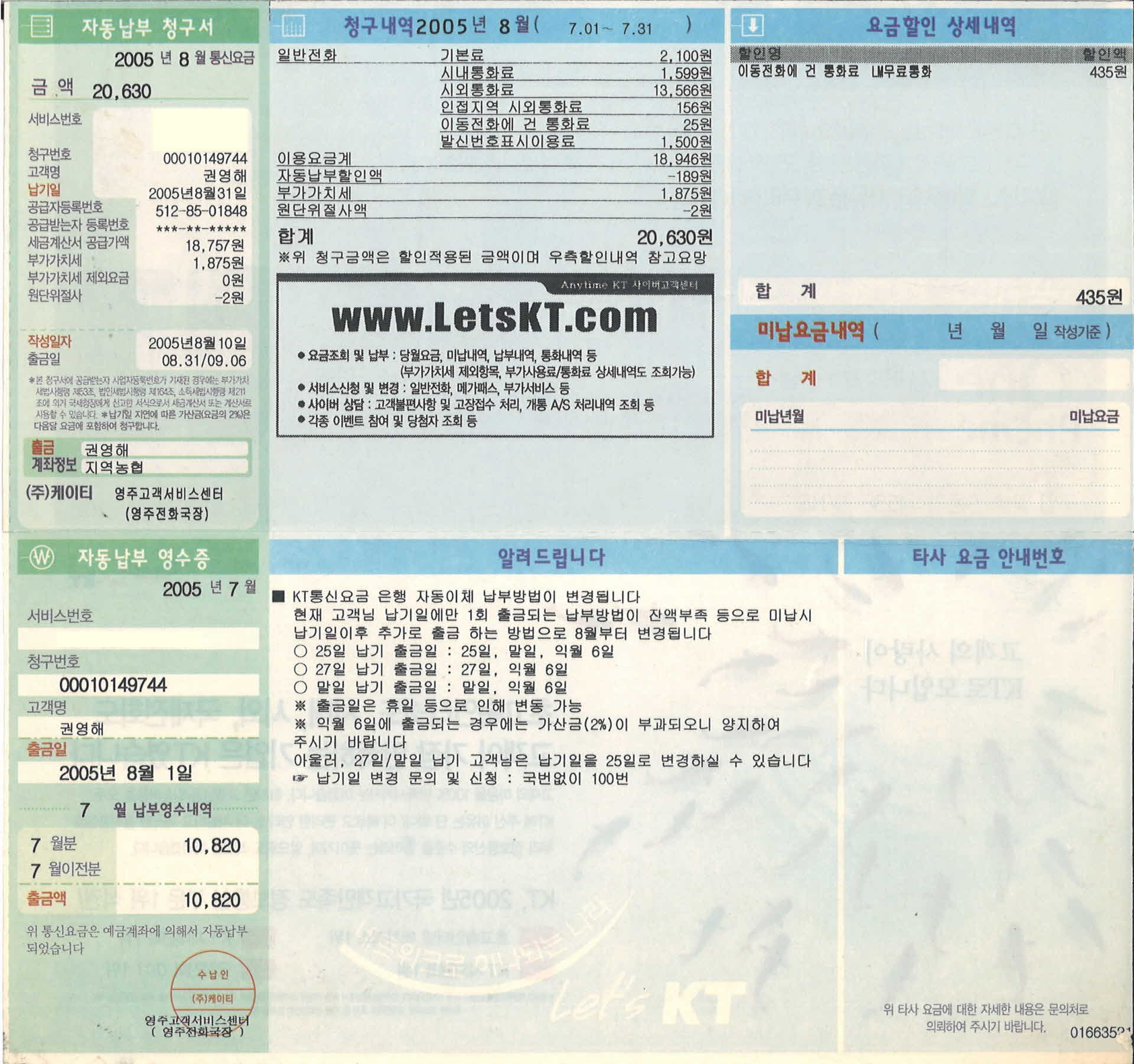 8월 KT자동납부청구서 > 영주, 영주사람
