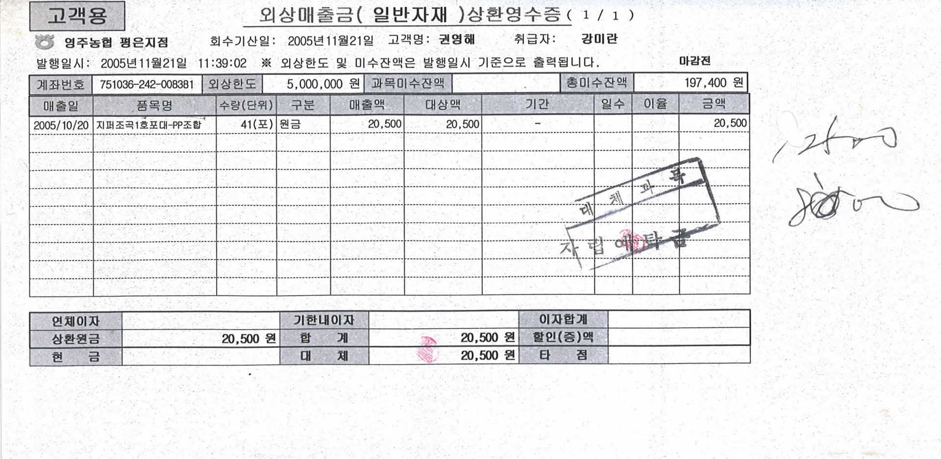 | 기록물명 | 외상매출금 일반자재 상환영수증 | ||