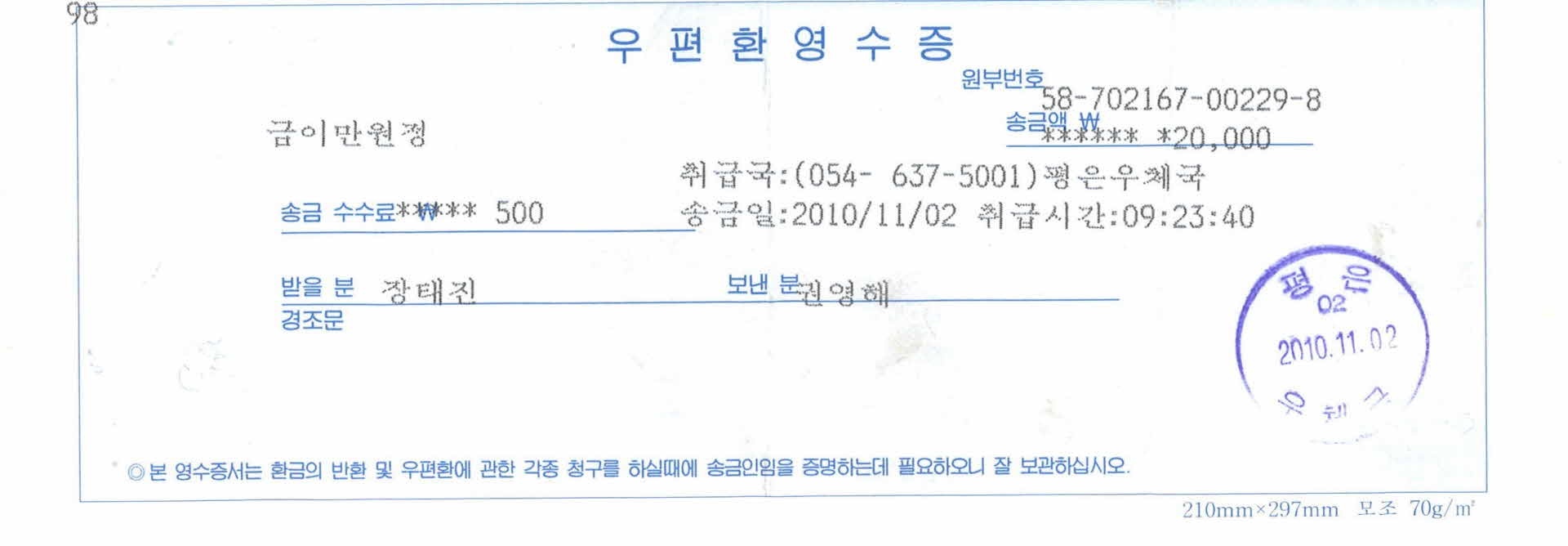 우편환 영수증