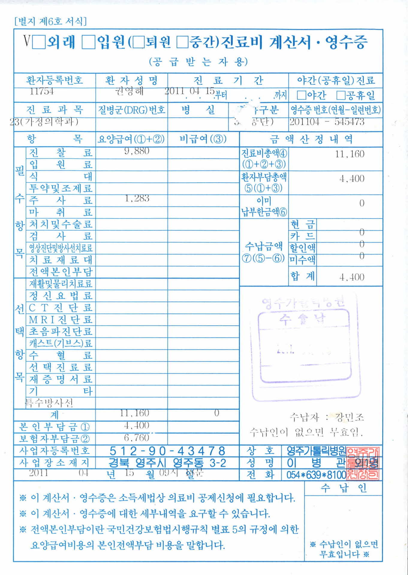 병원 영수증