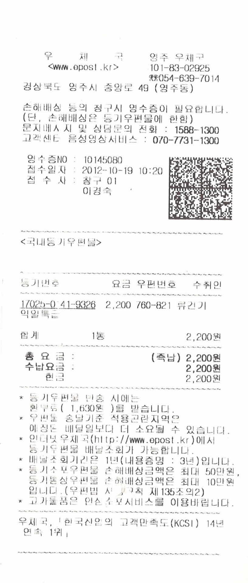 우체국 영수증2