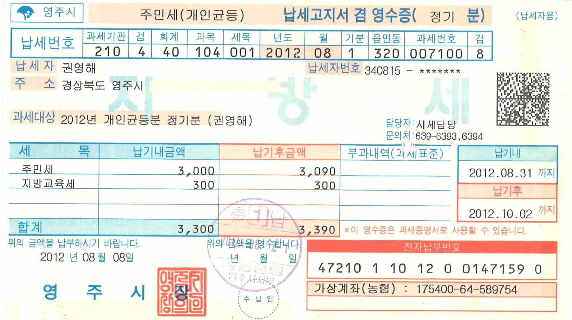 2012년 개인균등분 정기분 > 영주, 영주사람