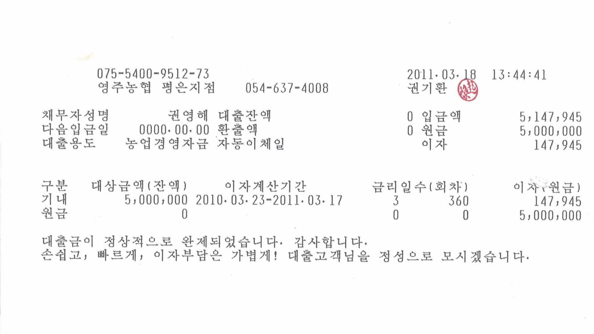 대출잔액 확인서