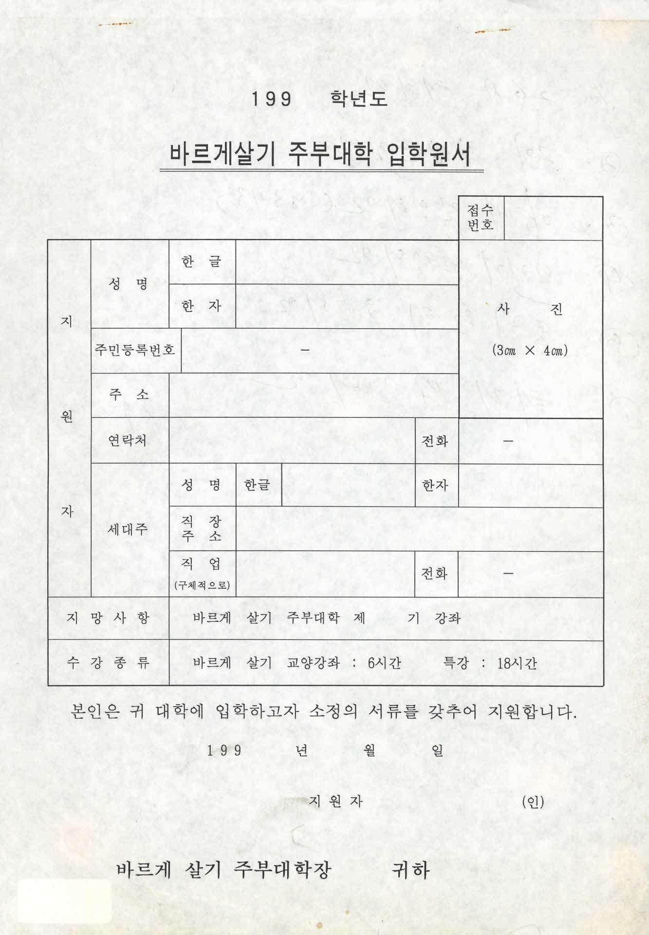 | 기록물명 | 바르게살기 주부대학 입학원서 | ||