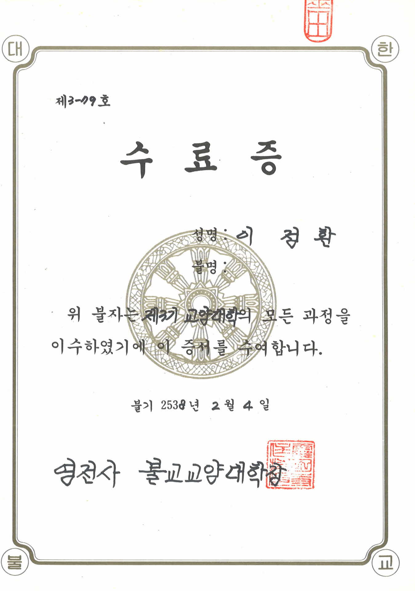 | 기록물명 | 제3기 불교교양대학 수료증 | ||