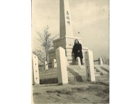 위령비에 앉아