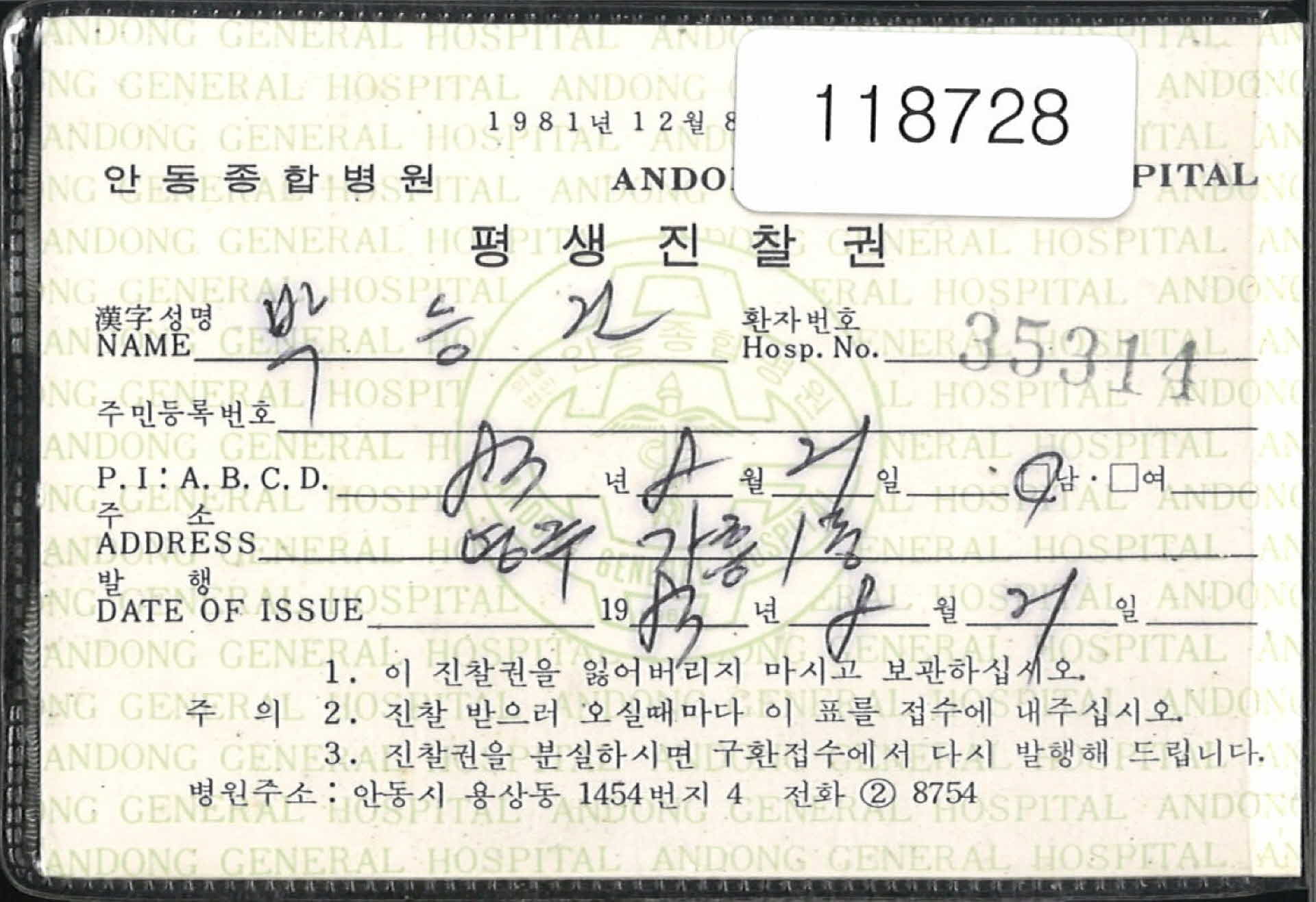 | 기록물명 | 안동병원 평생 진찰권 | ||