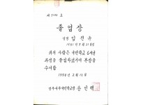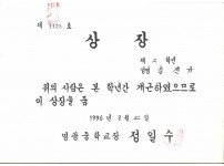 영광중학교 1년 개근상장