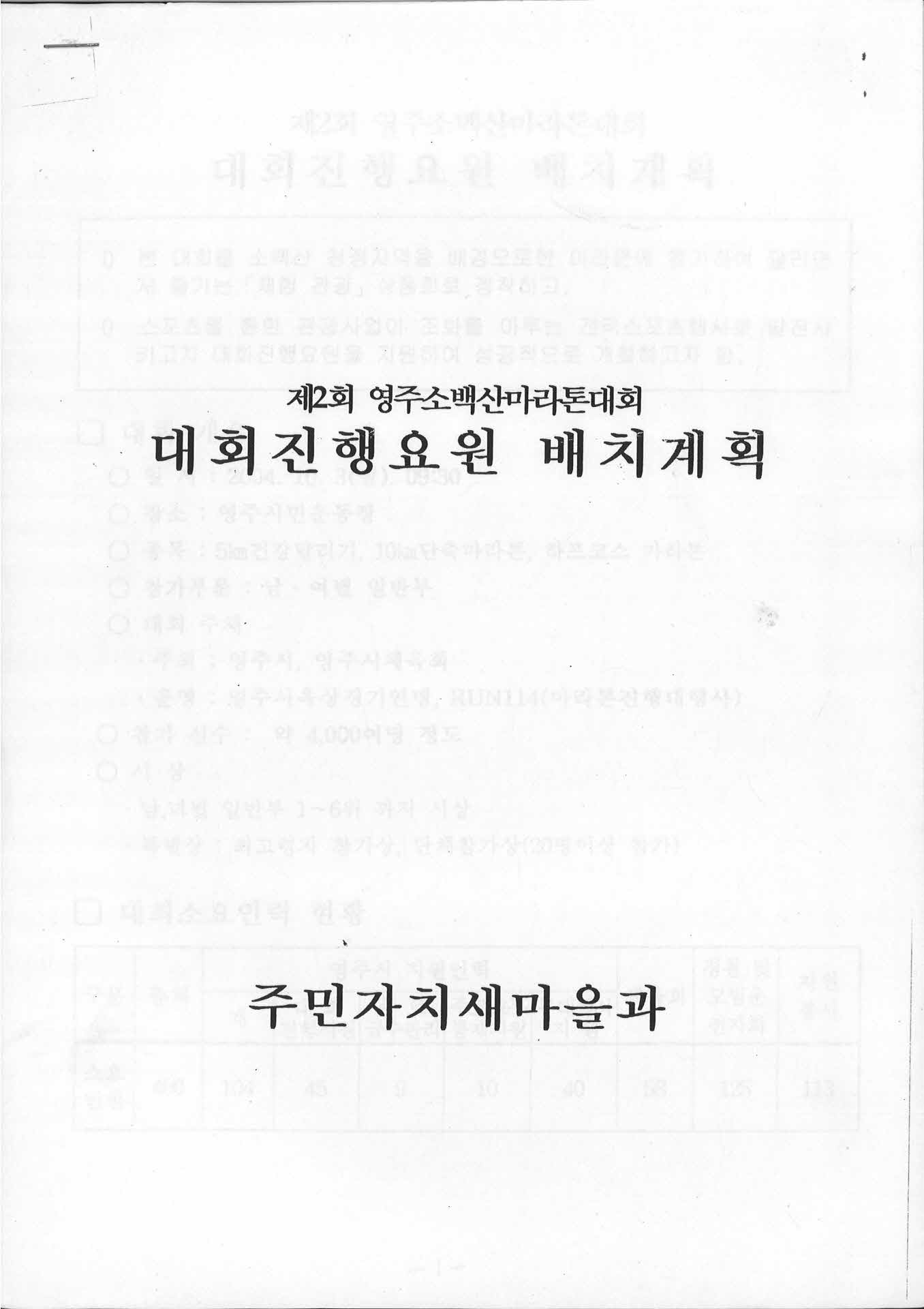 기록물명 제2회 영주소백산 마라톤 대회 대회진행요원 배치계획