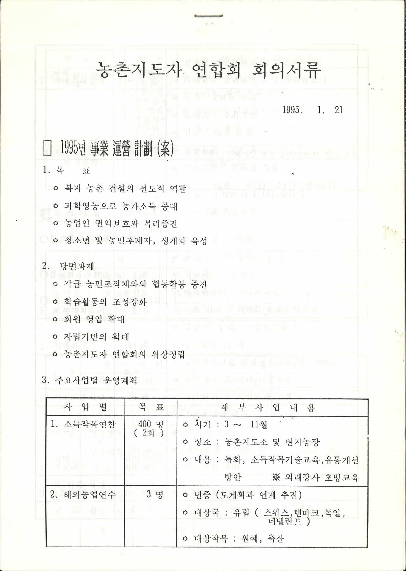 | 기록물명 | 농촌지도자 연합회 회의서류 | ||