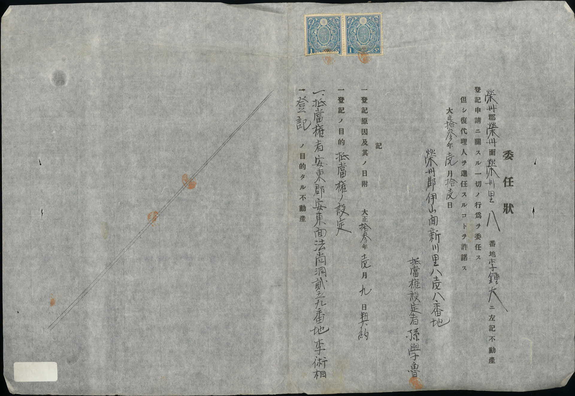 | 기록물명 | 대정13년 등기신청 위임장(이종대) | ||