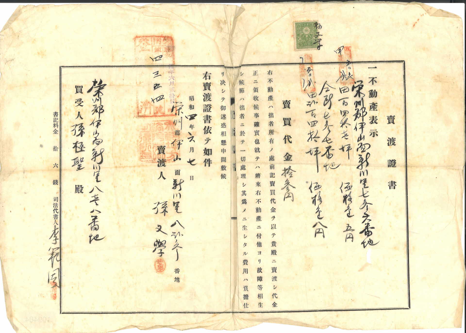 | 기록물명 | 소화4년 부동산 매도증서 | ||