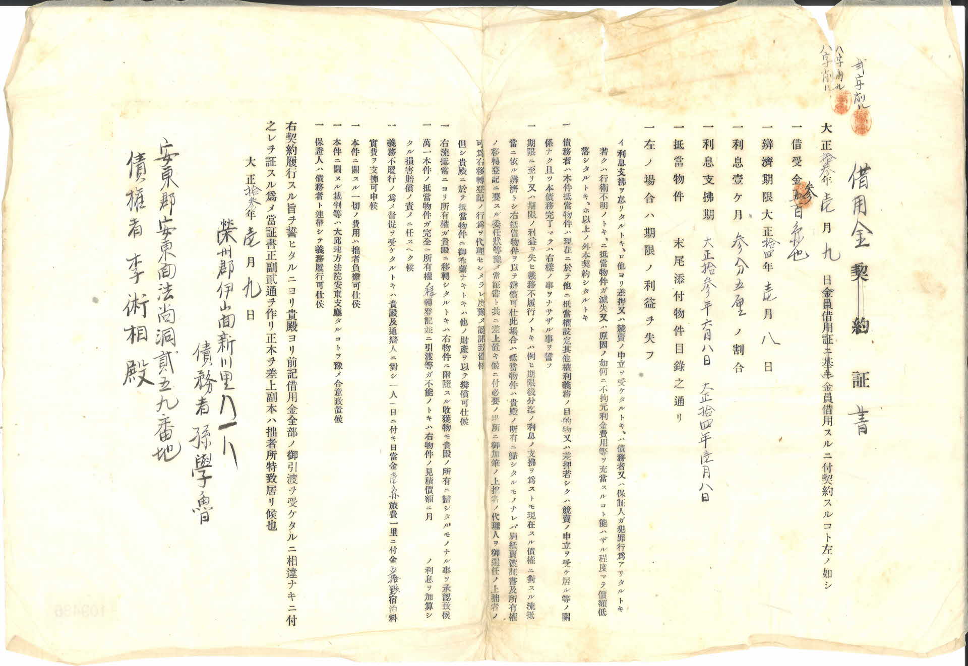 | 기록물명 | 대정13년 차용금증서 | ||