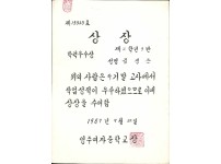 1987년 영주여자중학교 학력우수 상장