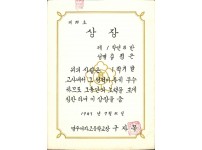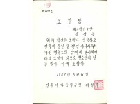1987년 영주여자중학교 표창장