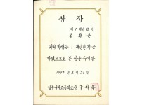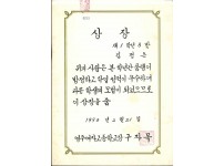 1990년 영주여자중학교 학업성적 우수 상장