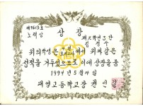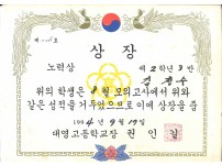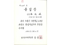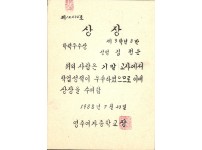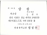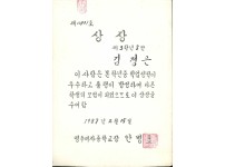1988년 영주여자중학교 학력우수상 상장