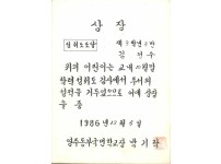 1986년 영주여자중학교 학력우수상 상장