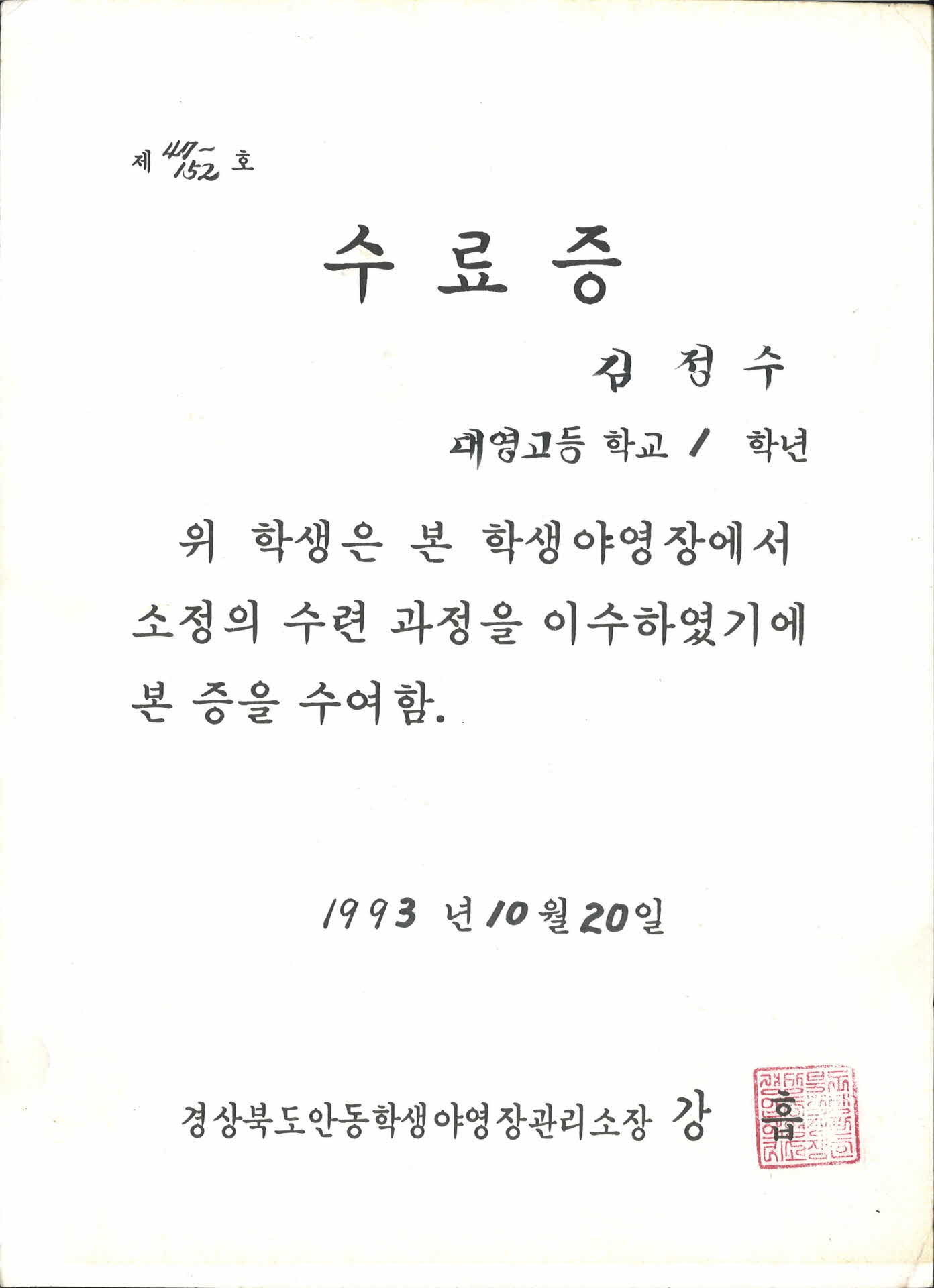 수료증 > 영주, 영주사람