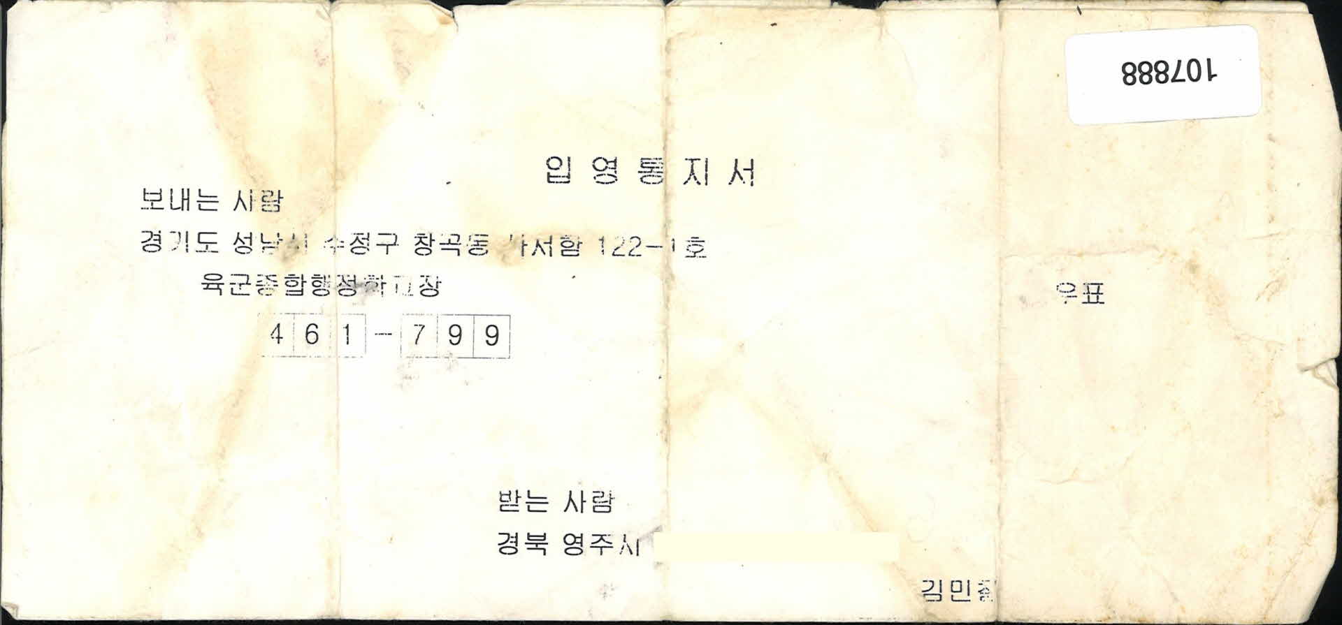 | 기록물명 | 2000년 입영통지서(카투사) | ||