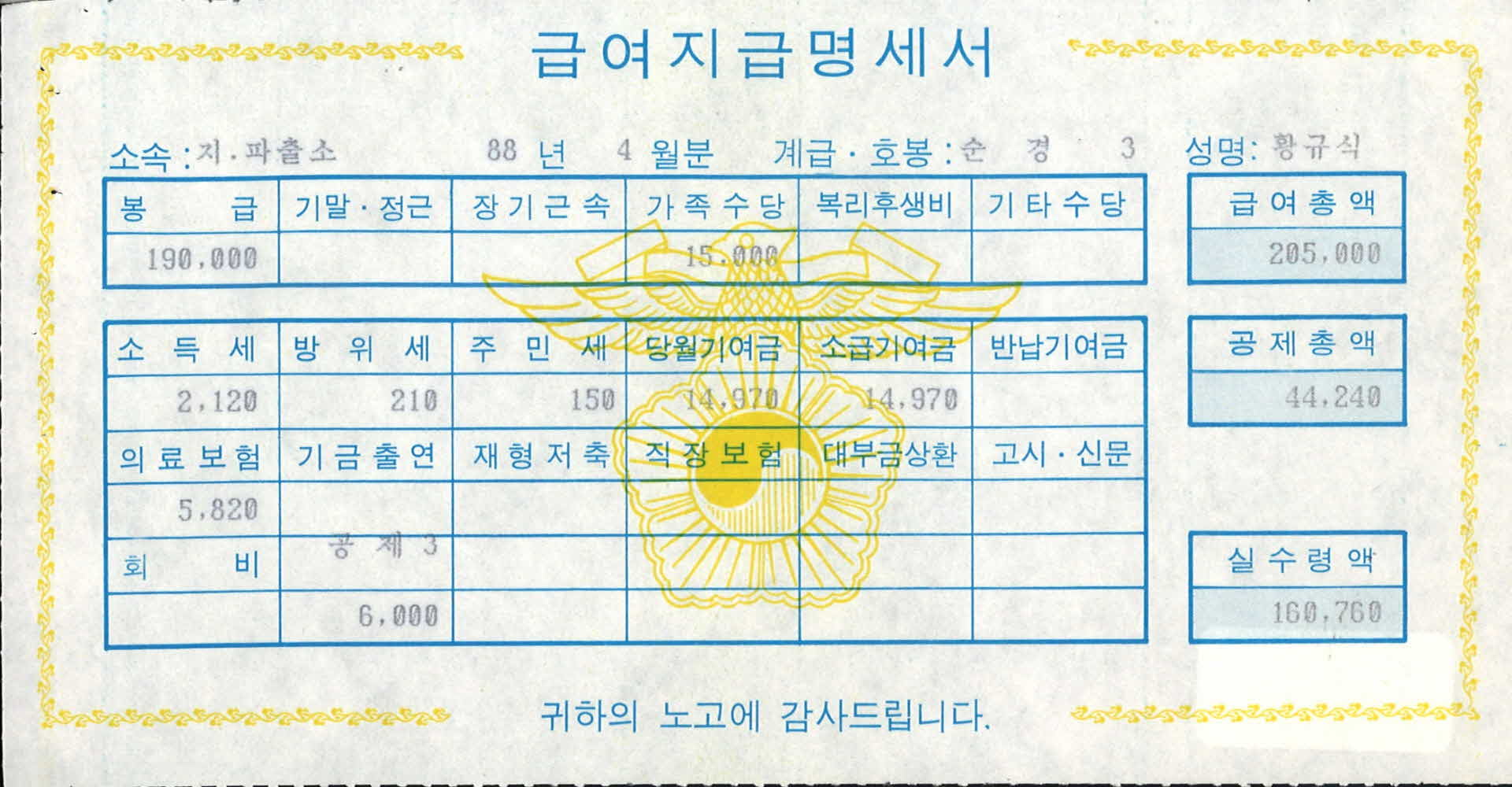 | 기록물명 | 1988년 4월분 순경 급여명세서 | ||