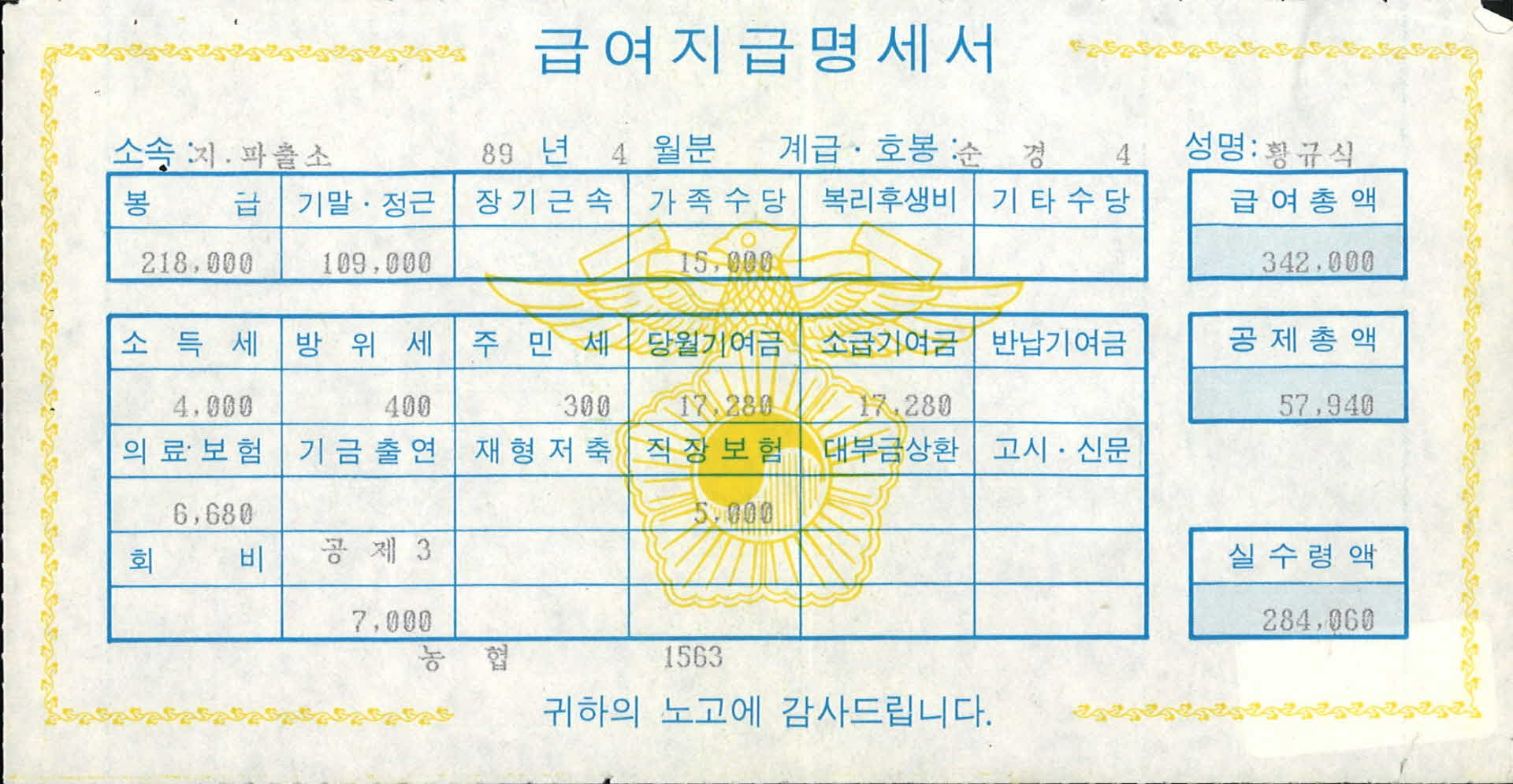 | 기록물명 | 1989년 4월분 순경 급여명세서 | ||
