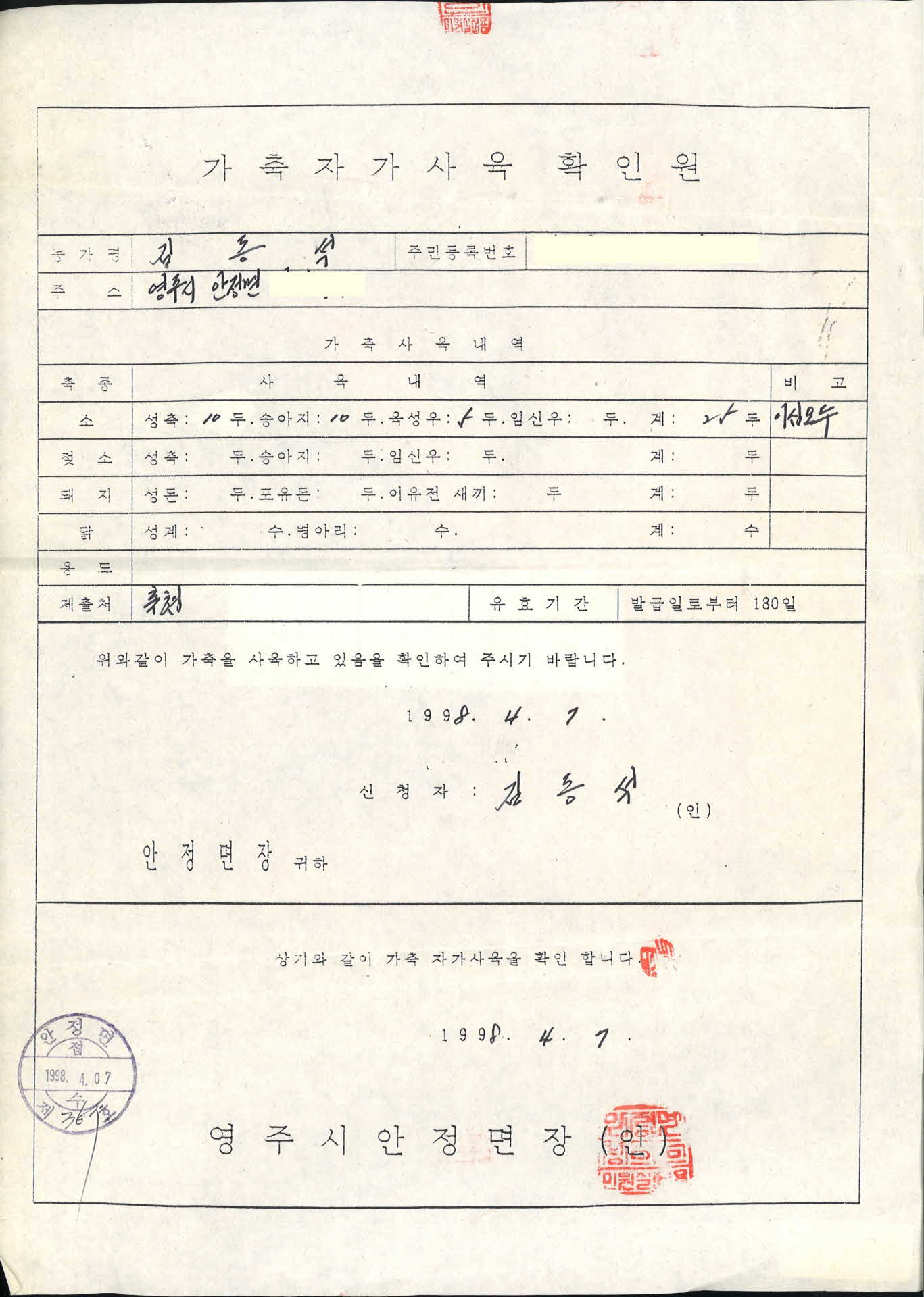 • 가축자가사육 확인원