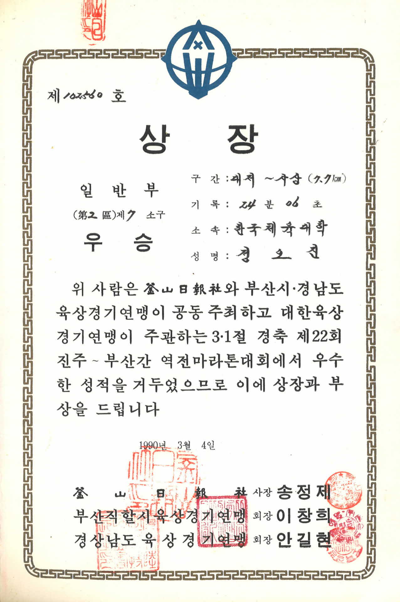 | 기록물명 | 진주~부산간 역전마라톤 일반부 우승 상장 | ||