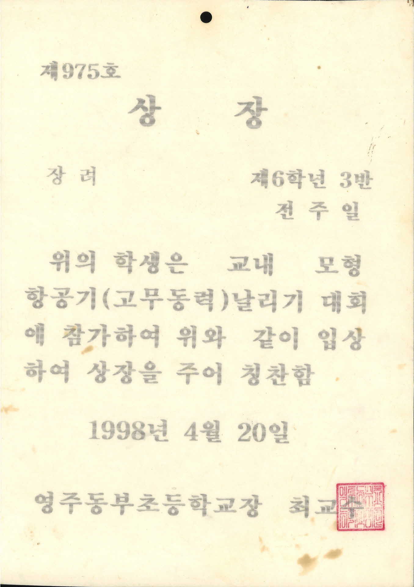 | 기록물명 | 영주동부초등학교 모형항공기대회 상장 | ||