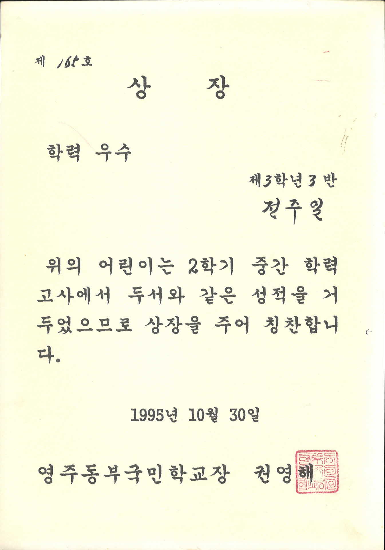 | 기록물명 | 영주동부초등학교 학력우수 상장 | ||