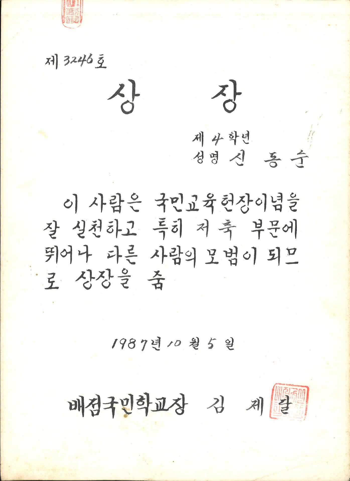 1987년도 배점국민학교 상장 > 영주, 영주사람