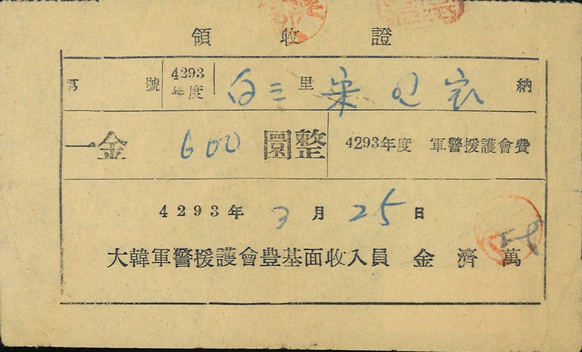 | 기록물명 | 대한군경원호회 영수증 | ||