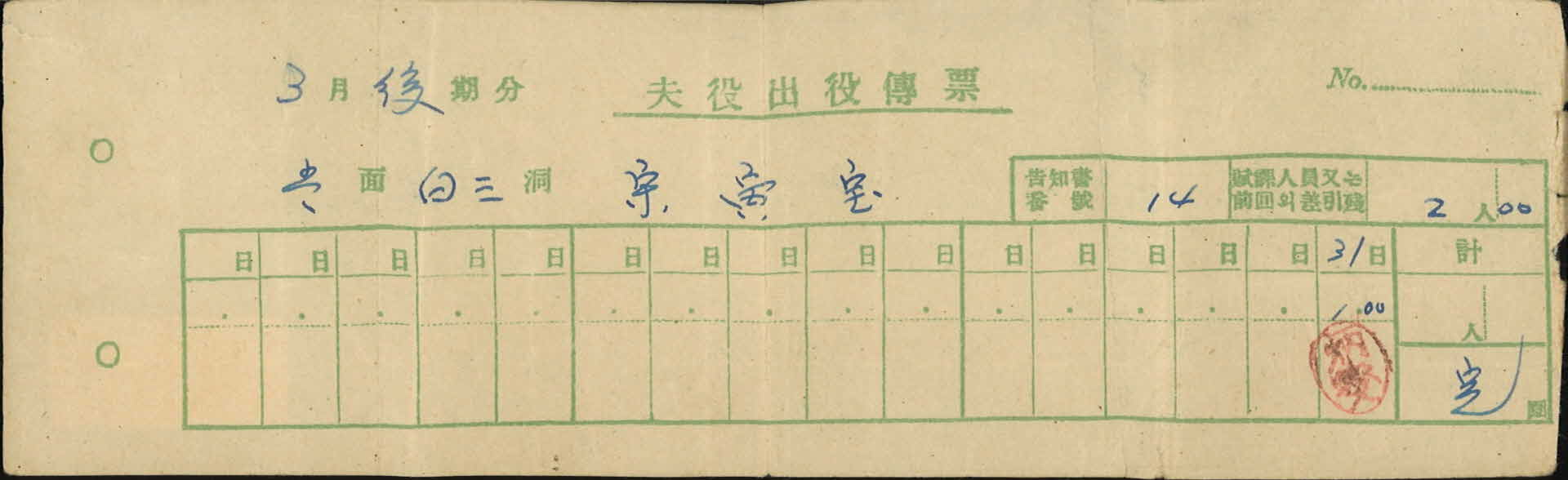 • 부역출역전표