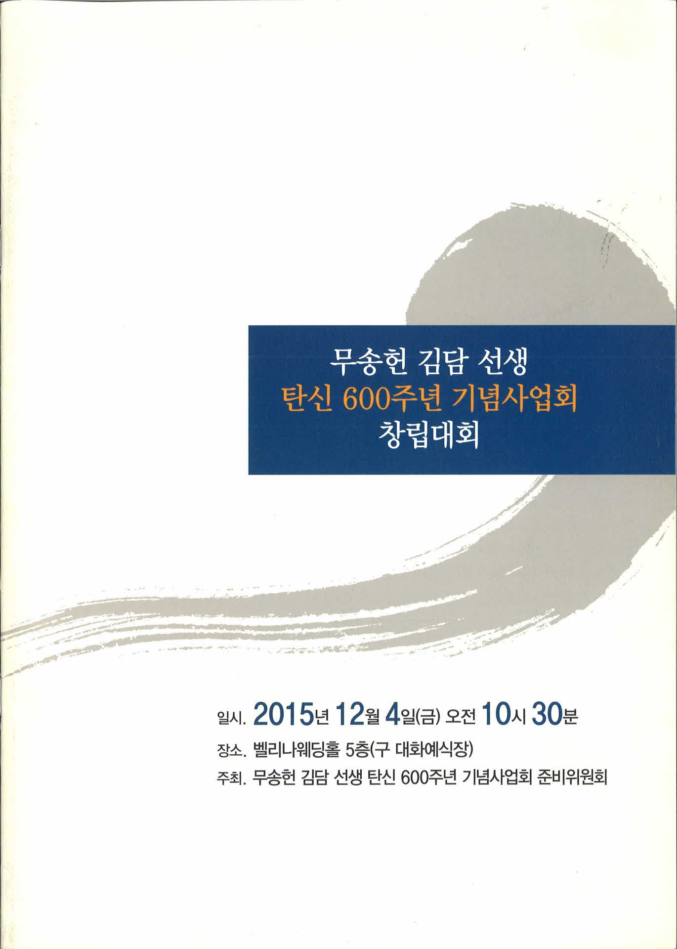 무송헌 김담 선생 탄신600주년 기념사업회 창립대회 홍보 팜프렛