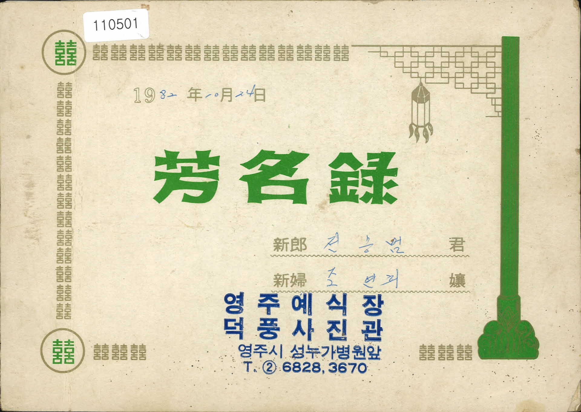 1982년 영주예식장 방명록
