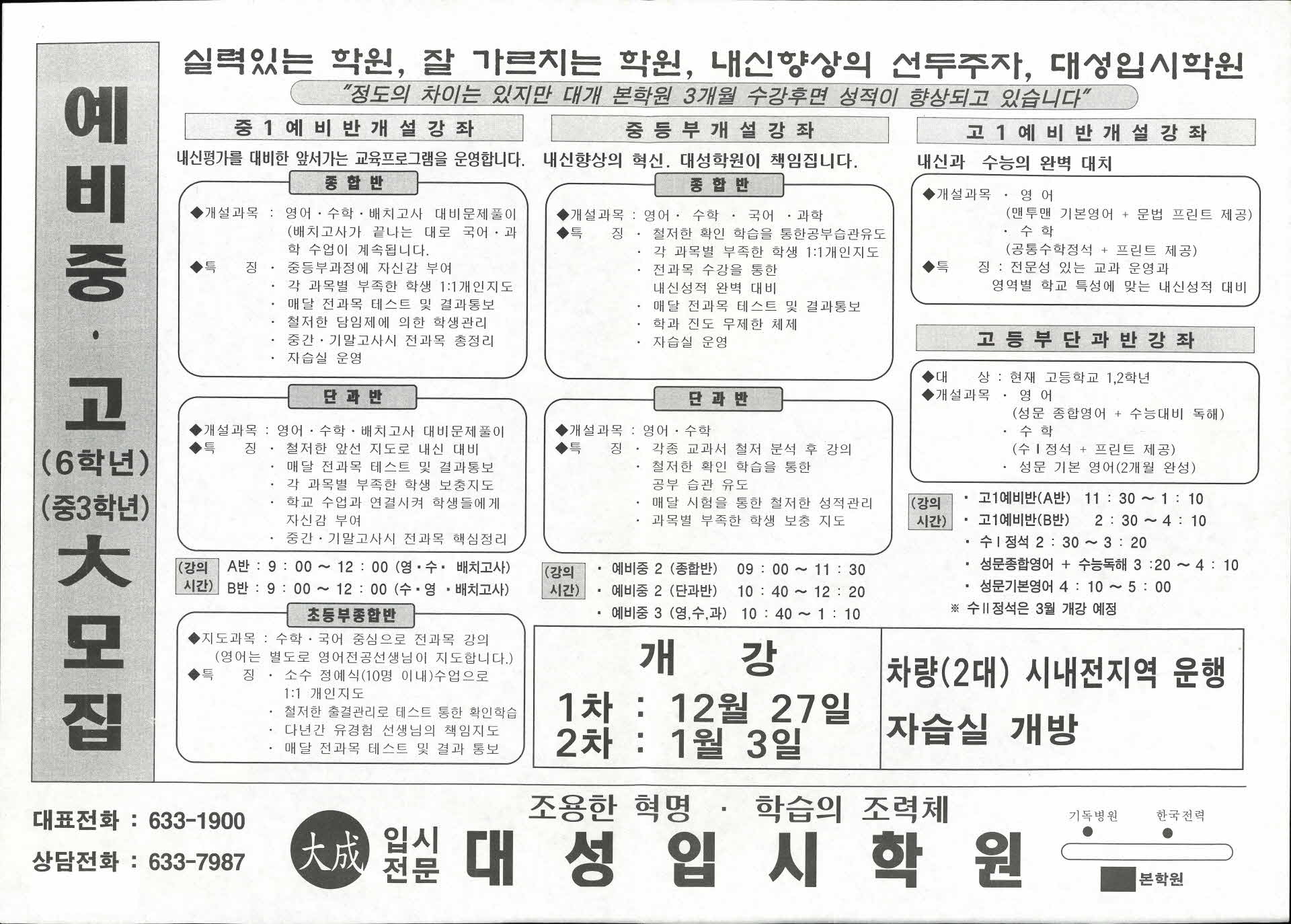 | 기록물명 | 대성입시학원 홍보전단지 | ||