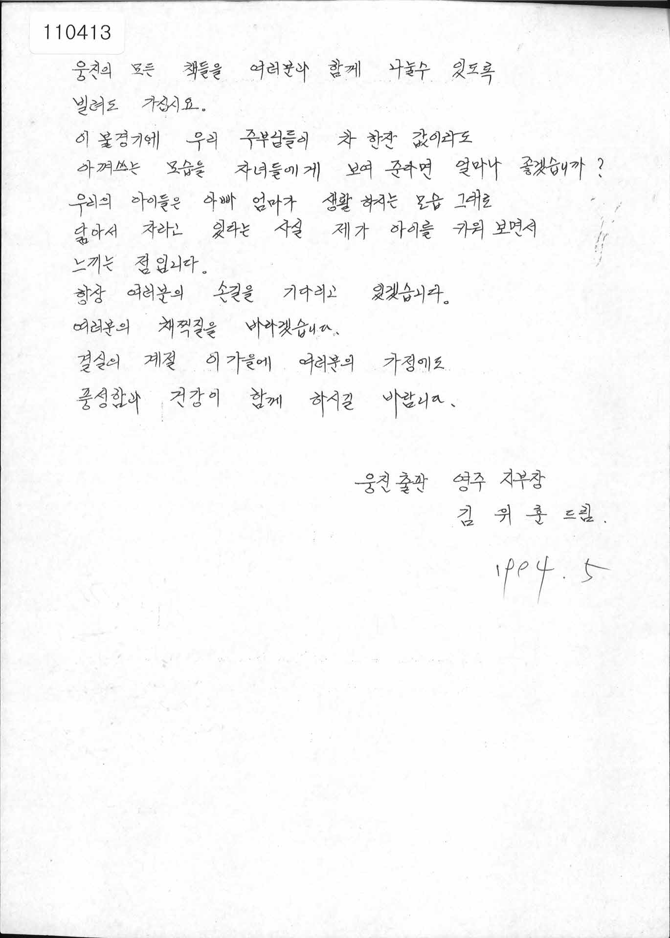 기록물명 웅진출판 영주지부장 필사 안내 전단