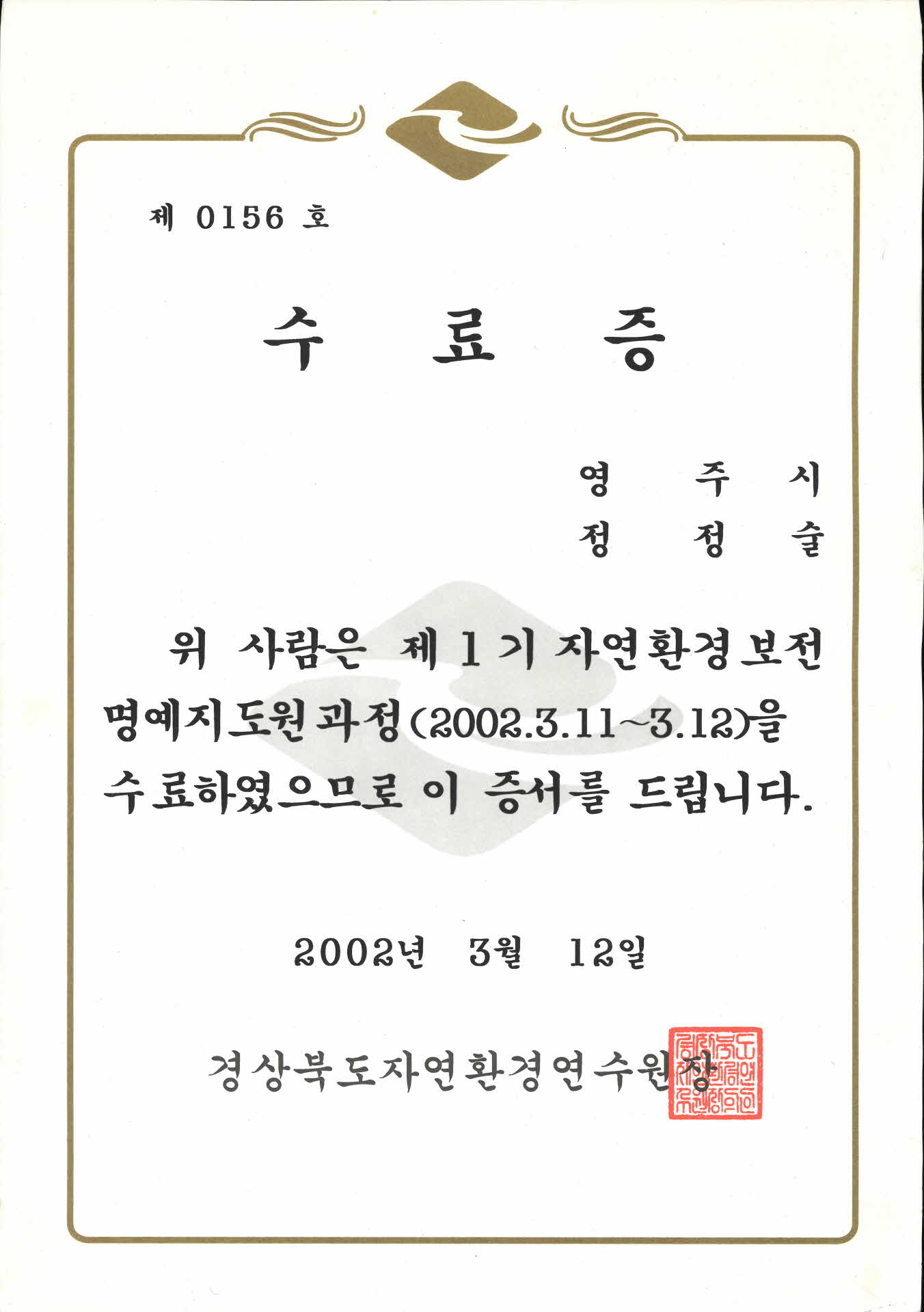| 기록물명 | 수료증 | ||