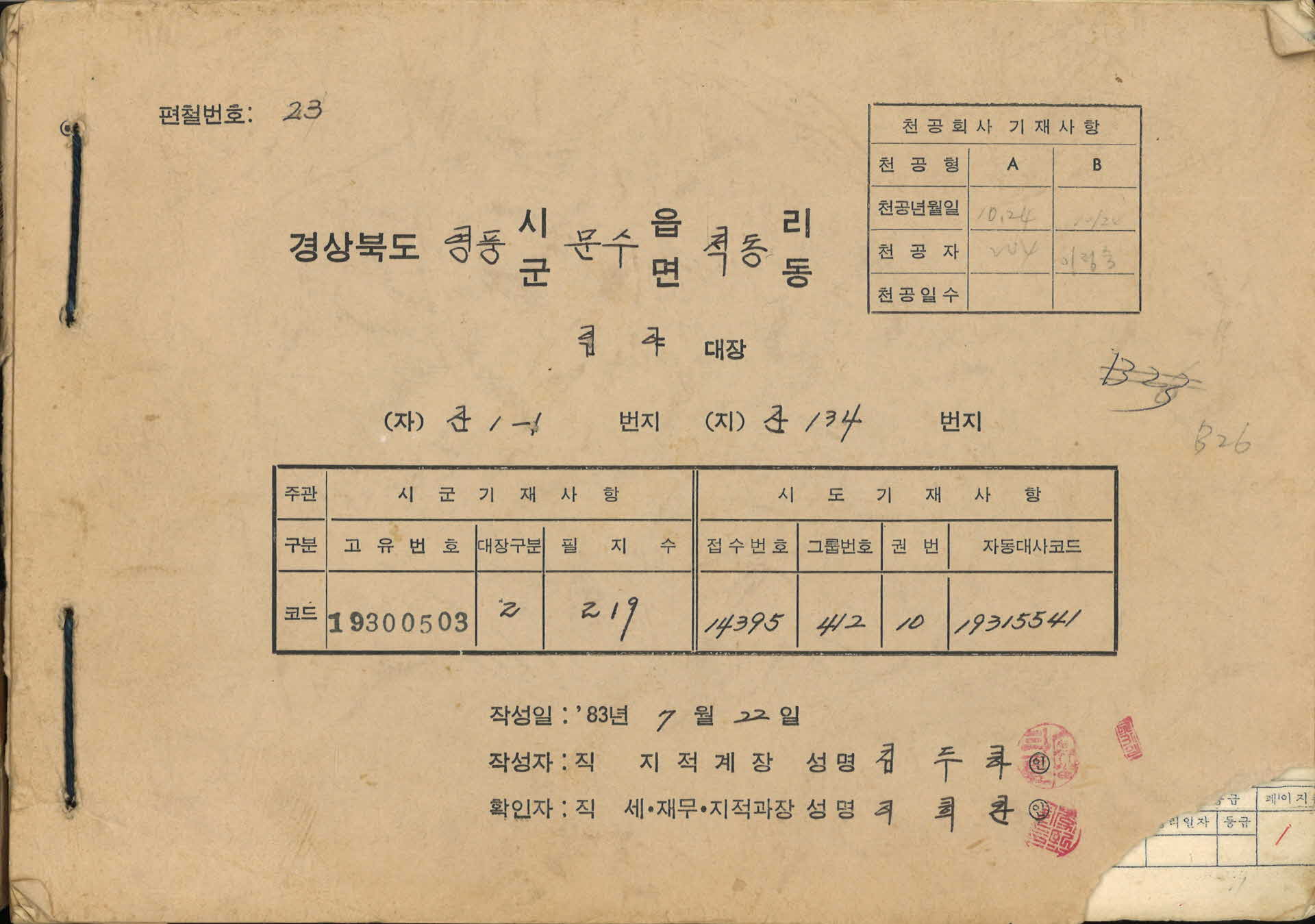 | 기록물명 | 임야대장 | ||