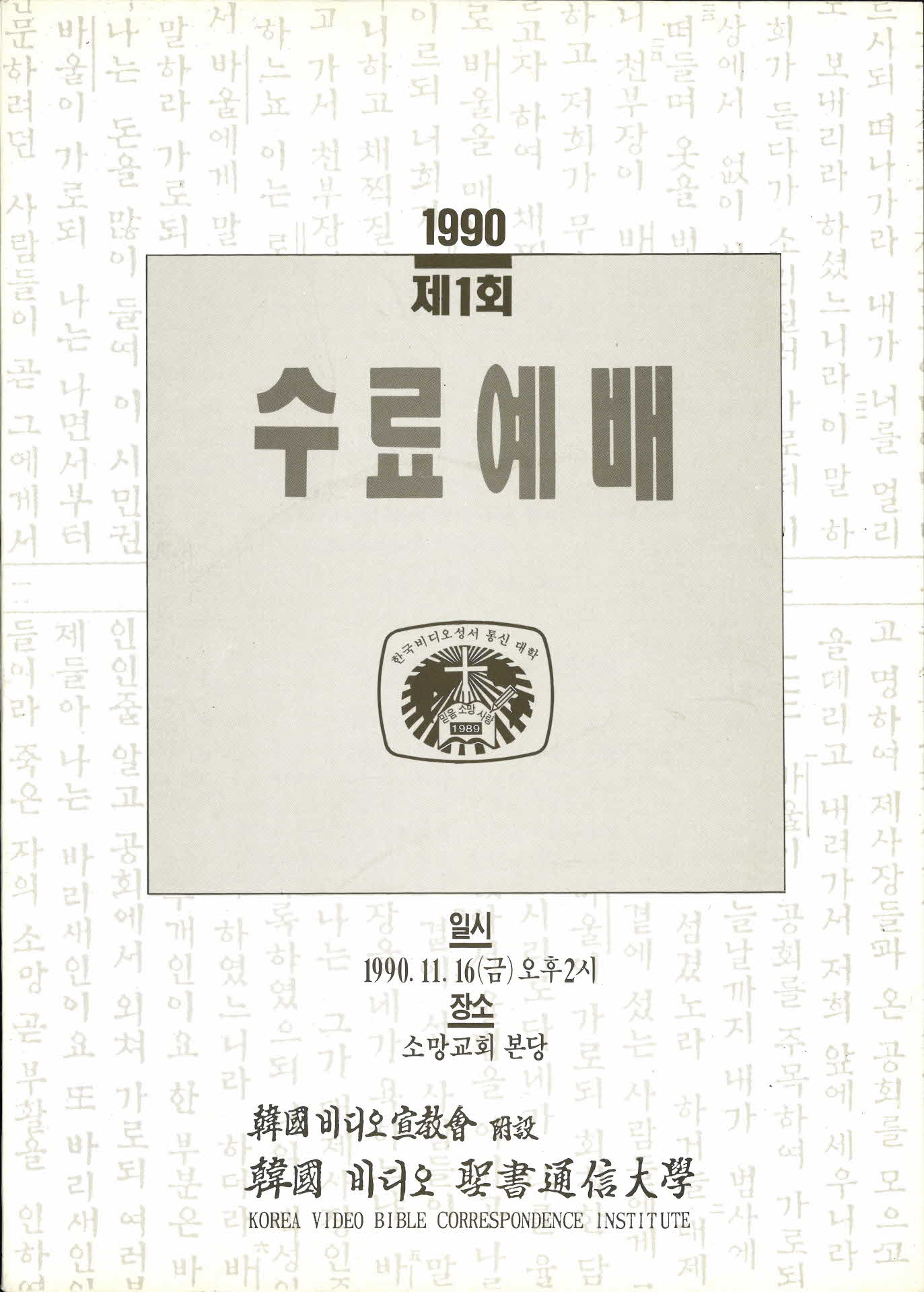 | 기록물명 | 제1회 수료예배 안내자료 | ||